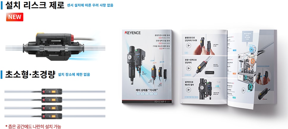KEYENCE 제품은 클램프온식의 설치하여 어디에나 간단하게 설치할 수 있으며 초경량 본체로 설치 브래킷도 필요하지 않습니다.