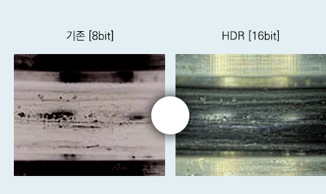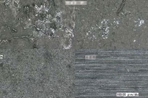 분할 기능으로 1화면 상에서 표면 상태를비교할 수 있습니다. 내구 시험을 할 때, 정기적으로화상을 저장해 두면 시간 경과별 관찰이 가능합니다.