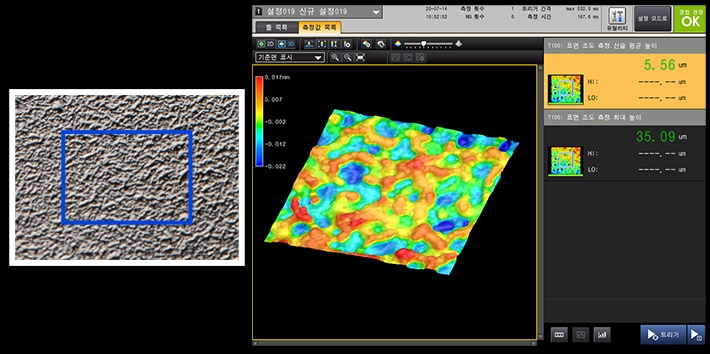 지정된 영역 안의 면 거칠기(Sa·Sz)를 측정할 수 있습니다. 주조품의 표면 거칠기 상태 등 선 거칠기로는 평가하기 어려운 대상 물체도 거칠기 수치를 관리할 수 있습니다.