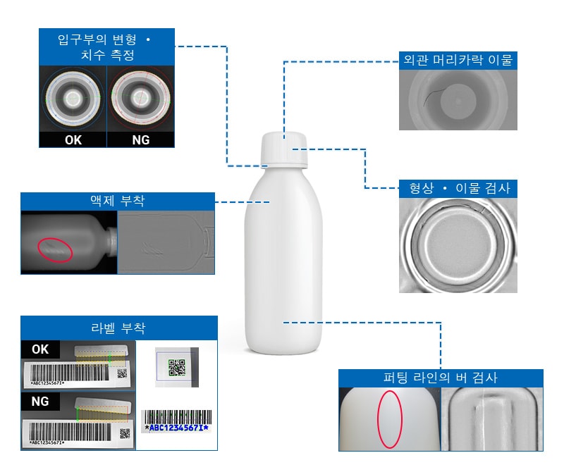 다양한 약품을 보관하는 약통에는 높은 레벨에서의 품질관리가 요구됩니다.수지 약통 등의 성형품도 예외는 아닙니다.FA 현장에서 많은 해결 사례를 보유하는 키엔스의 비전 센서는 이 분야에서도 널리 활약하고 있습니다.