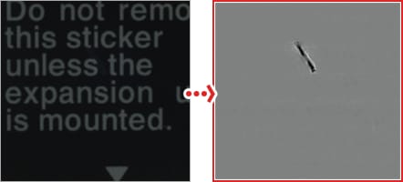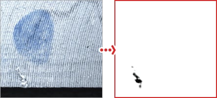 배경의 복잡한 인쇄와는 상관 없이 결함만을 추출하여 화상을 작성합니다.