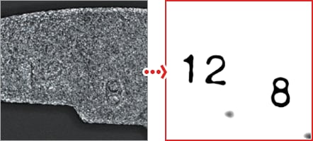 불규칙한 주물 표면 중에서 가장 큰 요철 정보인 인쇄 부분을 강조합니다.