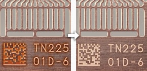 UV 레이저(파장 355 nm)는 다양한 소재에 대해 높은 흡수율을 가지며, 기존의 기본 파장(1,064 nm)을 사용하는 레이저 마킹기보다 뛰어난 성능을 발휘합니다. 특히, 가시성이 낮은 재질이나 열 영향을 최소화해야 하는 용도에서 고발색 무손상 인쇄 및 가공을 실현합니다. 또한, 레이저 헤드에 내장된 거리 측정 센서와 다기능 카메라를 통해 대상 물체와의 거리 어긋남이나 반송 시 위치 어긋남을 자동으로 보정할 수 있습니다. 레이저 출력과 윈도우 오염도 실시간으로 모니터링하여 인쇄 불량을 사전에 방지하고, 안정적인 가동을 지원합니다.
