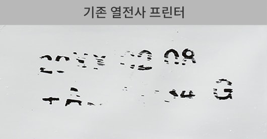 기존의 잉크 방식에서는 인쇄 전공정의 기름·가루 혹은 인쇄 후공정의 알코올·열 살균·반송 시 마찰 등으로 인해 인쇄가 지워지거나 누락이 발생할 위험이 있었습니다.