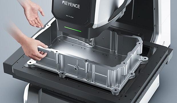 대상 물체를 고해상도로 포착할 수 있는 이미지 치수 측정 시스템 IM-8000 시리즈는 간단한 조작은 그대로 유지하면서 검출 성능을 기존 대비 3배로 향상시켰습니다. 2000만 화소 CMOS와 안정적으로 에지를 검출할 수 있는 새로운 알고리즘을 채택하여 불과 몇 초만에 최대 300포인트의 고정도 측정이 완료됩니다. 또한 새로 개발된 「회전 유닛」을 활용할 경우, 다양한 사이즈∙형상의 대상 물체를 수평을 유지한 채로 자동으로 회전시켜 360° 다면을 안정적으로 일괄 측정할 수 있습니다. 측정 버튼을 누르기만 하면 OK인 간단한 조작이므로 작업자에 따른 측정값 편차가 발생하지 않아 측정 공정 수가 압도적으로 줄어듭니다. 신속·정확·간단한 측정으로 측정 업무의 과제를 해결합니다.