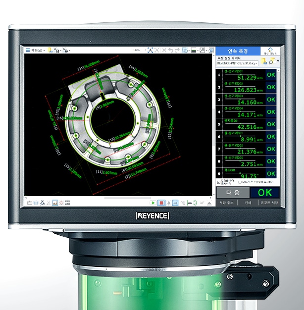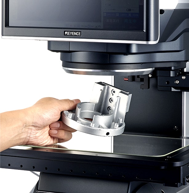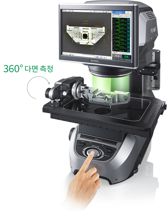 대상 물체를 유닛에 장착하기만 하면 OK. 자동으로 대상 물체를 회전시키면서 여러 면을 측정합니다. 복잡한 측정 항목도 지그/설치 변경 없이 측정할 수 있습니다.