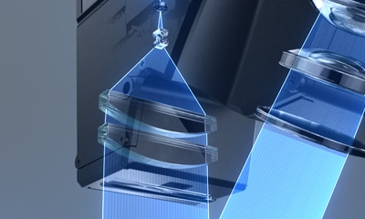 독자적인 설계의 실린드리컬 렌즈를 이용해 평행광을 조사. 대상 물체 표면의 반사광 산란을 억제합니다.