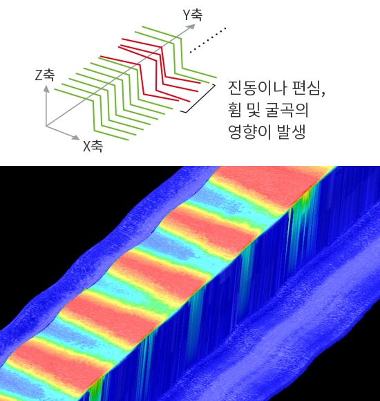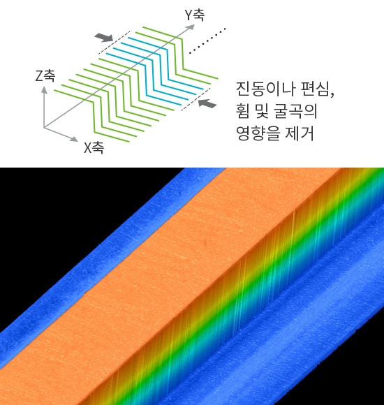 프로파일 얼라인먼트를 통해 최적의 3D 화상을 생성할 수 있습니다. 흠집, 결함 등을 인라인에서 안정적으로 검사할 수 있습니다.