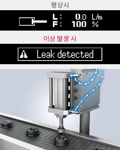 FD-EP 시리즈는 유량과 압력을 동시에 측정하여 전용 애플리케이션 모드* 로 처리함으로써 기존에는 감·노하우로 관리하는 경우가 많았던 공기압 기기의 상태를 진단합니다. 실시간으로 공기압 기기의 상태를 파악해 예지 보전을 실시하면 설비의 생산성 향상으로 이어집니다.