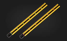 안전 라이트 커튼 GL-V 시리즈는 본체만으로도 상태를 한눈에 확인할 수 있는 「대형 라인 표시등」을 탑재하고 있습니다. 입광 시에는 녹색, 차광 시에는 적색으로 상태가 표시되어, 멀리 떨어진 곳에서도 어떤 라이트 커튼이 차광되고 있는지 즉시 파악할 수 있으므로 상태를 빠르게 복구할 수 있습니다. 또한 표시 패턴을 통해 수광량 저하나 에러 발생 등을 확인할 수 있어 문제를 조기에 대처할 수 있습니다. 이는 장비의 셋업·조정·가동 등 모든 상황에서 유용하게 작용합니다. 뿐만 아니라 GL-V 시리즈는 어디에나 설치하기 쉬운 22 mm × 22 mm의 압도적인 소형 사이즈임에도 불구하고 본체 케이스를 약 3 mm 두께로 견고하게 제작하여 뛰어난 내구성까지 실현했습니다. 내부의 광학 구조 또한 대담하게 재설계하여 본체 사이즈의 소형화와 고출력화를 동시에 실현하였으며, 최대 15 m의 검출 거리에 대응합니다.