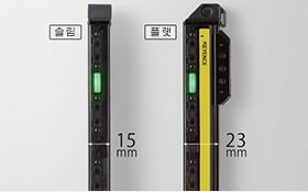 슬림 & 플랫 타입을 통해 장비로의 매끄러운 설치가 가능하며, 실제 사이즈도 기존 라이트 커튼의 1/2 정도의 크기입니다.