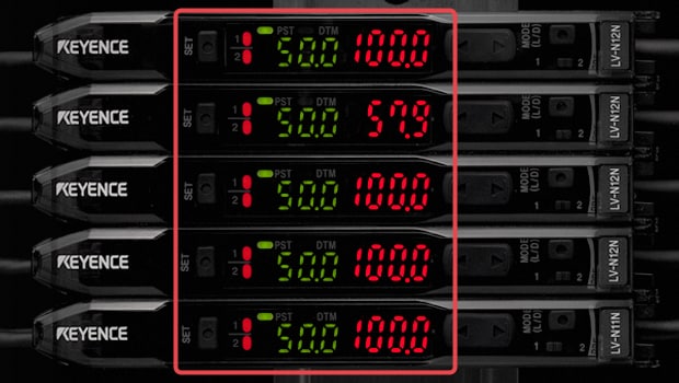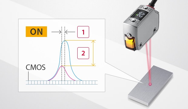 표준 검출 단차가 최소 0.5 mm로 얇은 물체의 검출에도 대응할 수 있습니다. 또한 최대 300만 배의 하이다이내믹 레인지를 이용하므로 대상 물체의 색이나 형상의 영향을 잘 받지 않아 안정적으로 검출할 수 있습니다.
