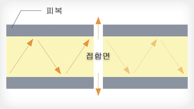 접합면에서 광량이 90% 정도 감쇄합니다.