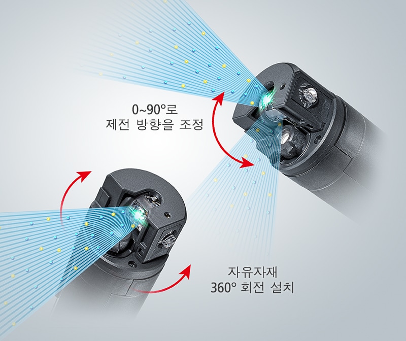 설치 위치를 바꿀 필요 없이 360° 모든 앵글에서 제전 가능. 「장비에 후장착해야 하는데 공간이 없다.」, 「핀 포인트로 제전하고 싶다.」 등 설치와 관련된 문제를 모두 해결합니다.