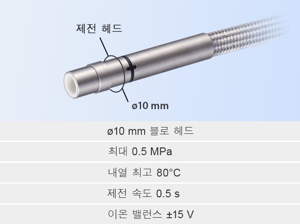 외경 10 mm의 헤드로 1 m 이상의 범위를 제전