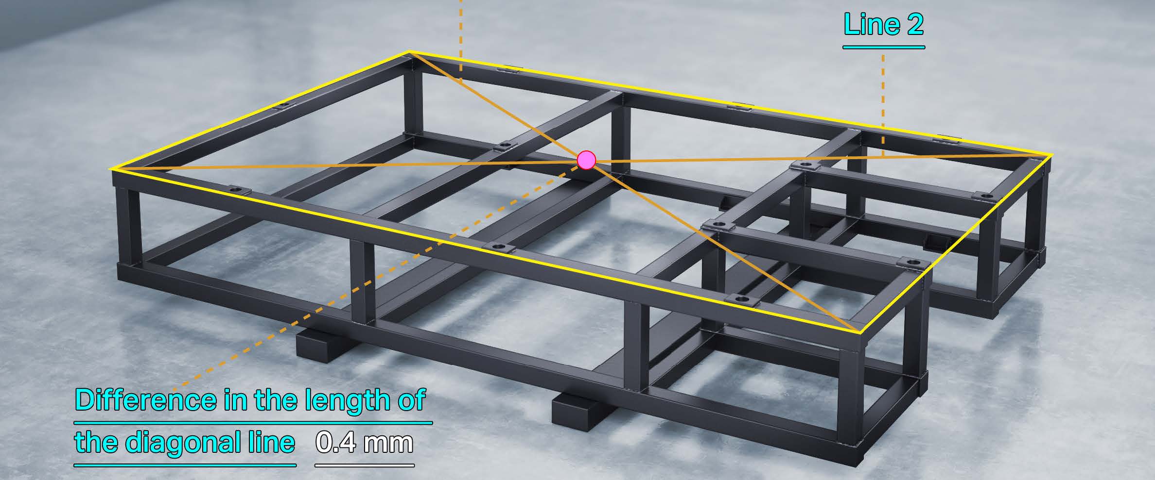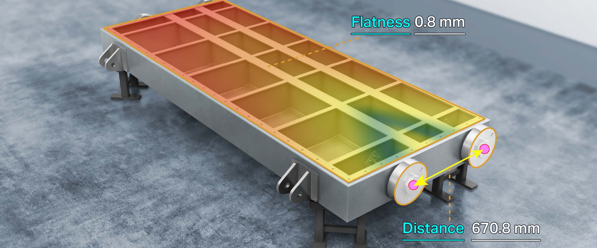 광범위 3차원 측정기 WM 시리즈는 제관 용접으로 제작된 장치 가대의 측정에도 활용할 수 있으며, 평탄도는 물론 대각선 거리까지 측정할 수 있습니다.
