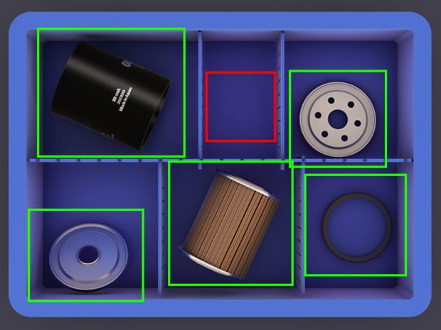 AI 탑재 스마트 비전 IV 시리즈는 학습 서치 툴과 학습 카운트 툴을 활용해, 수동 조립 공정에서 부품 수량 확인과 부품 오류 검출을 간단하게 판정할 수 있습니다.