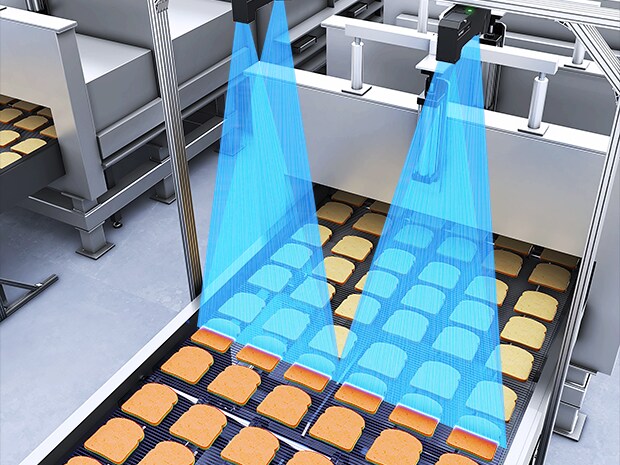 인라인 프로파일 측정기 LJ-X 시리즈는 '높이 이미지'를 통해 빵의 두께와 형상을 3D로 정밀하게 측정합니다. 이를 통해 색상 변화에 관계없이 미세한 구멍이나 두께가 얇은 부분까지 정확하게 검출하여, 클레임 발생을 사전에 방지할 수 있습니다.