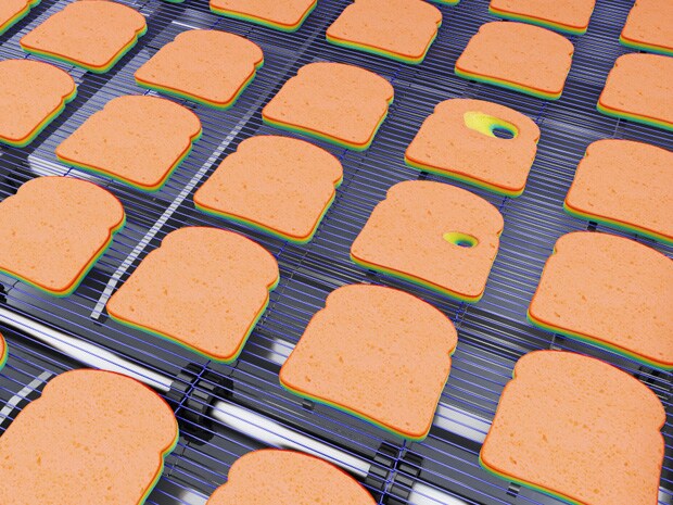샌드위치용으로 가공되는 슬라이스 빵에 구멍이 있으면, 제품 가치가 떨어져 클레임의 원인이 됩니다.