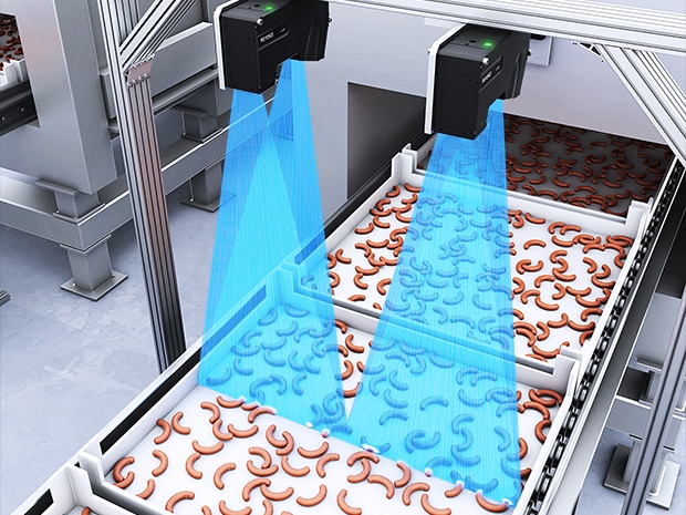 LJ-X8000 시리즈는 레이저 프로파일로 대상의 3D 형상을 직접 측정합니다. 따라서 표면의 색상이나 광택에 영향을 받지 않고, 소시지의 정확한 치수, 체적, 변형 여부를 정밀하게 검출하여 안정적인 전수 검사를 실현할 수 있습니다.