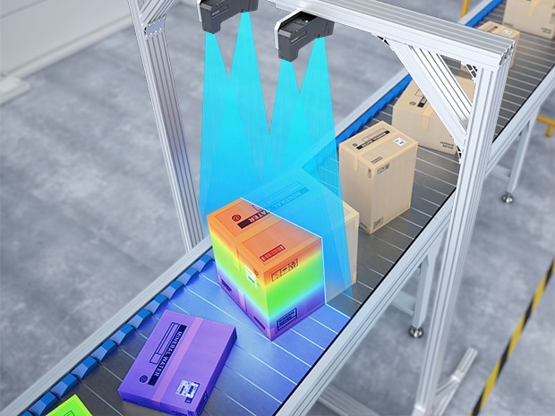 인라인 프로파일 측정기 LJ-X 시리즈는 레이저를 통해 패키지의 3D 형상(가로, 세로, 높이)을 직접 측정합니다. 이 방식은 패키지의 색상이나 표면 상태, 외란광의 영향을 받지 않습니다.