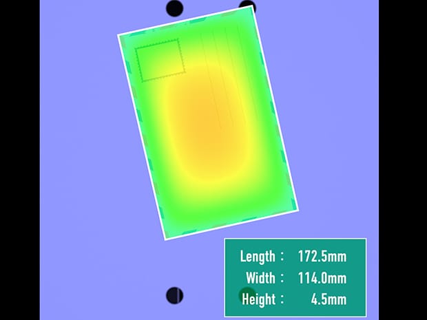 인라인 프로파일 측정기 LJ-X 시리즈는 최고 16kHz의 초고속 샘플링으로, 고속으로 이송되는 우편물의 3D 형상 데이터를 정밀하게 취득합니다. 이 방식은 봉투의 색상, 인쇄 디자인, 재질에 전혀 영향을 받지 않고 오직 물리적인 치수(가로, 세로, 두께)만을 측정합니다. 이를 통해, 분류 설비에 정확한 데이터를 실시간으로 피드백하여 안정적인 시스템 제어와 완벽한 자동 분류를 실현할 수 있습니다.