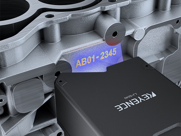 오토 스캔 3D 센서 LJ-S 시리즈는 레이저를 통해 대상의 3D 형상 데이터를 직접 취득합니다. 이 높이 정보를 기반으로 3D OCR을 수행하므로, 주물 표면의 거친 요철이나 오염의 영향에 관계없이 각인된 문자를 정확하게 판독할 수 있습니다.