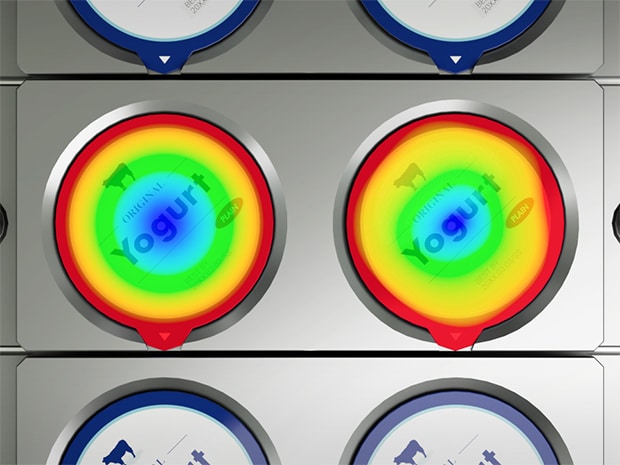 오토 스캔 3D 센서 LJ-S 시리즈의 '3D 외관 검사' 기능은 대상의 물리적인 높이를 직접 측정하여 '높이 이미지'를 생성합니다. 이 방식을 통해, 덮개 표면의 인쇄나 무늬에 전혀 영향을 받지 않고, 정상적으로 압착된 실링 부위의 미세한 형상 변화를 정확히 감지하여 불량을 확실하게 판별할 수 있습니다.
