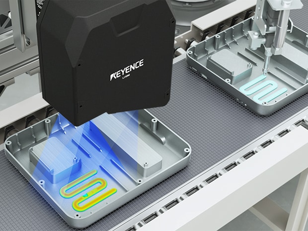 오토 스캔 3D 센서 LJ-S 시리즈는 대상물의 3D 형상 데이터를 직접 스캔하여, 방열재의 폭, 높이, 체적을 동시에 정밀하게 측정합니다. 또한, 오토 스캔 3D 센서 LJ-S 시리즈는 센서 헤드 자체에 고정밀 스캔 기구가 내장되어 있습니다. 따라서 일반적인 3D 스캐너에 필수적인 외부 구동 스테이지나 엔코더, 그리고 이를 제어하기 위한 복잡한 개발 공수가 전혀 필요 없습니다. 장치에 센서를 설치하는 것만으로 즉시 고정밀 인라인 3D 검사를 실현하여, 설비의 구조를 획기적으로 단순화하고 개발 기간을 단축할 수 있습니다.