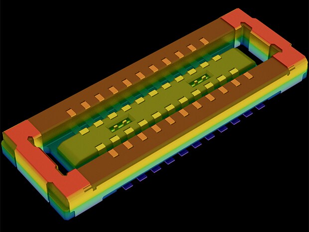 오토 스캔 3D 센서 LJ-S 시리즈는 표면의 높이를 직접 측정하여 생성한 '높이 이미지'를 통해, 핀의 높이와 피치 편차를 마이크로미터 단위로 정밀하게 검출합니다. 또한, 오토 스캔 3D 센서 LJ-S 시리즈는 초고속 스캔이 가능하여, 인덱스 테이블이 잠시 정지하는 짧은 시간 안에 모든 검사를 완료할 수 있습니다. 따라서 별도의 검사 공정을 추가할 필요 없이, 기존 설비에 센서를 부착하는 것만으로 간단하게 고정밀 3D 검사를 도입할 수 있습니다.