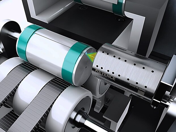 소형·스폿 직경이 작은 레이저 동축 변위 센서 CL-S015는 전극 1장 1장의 형상을 정밀하게 측정할 수 있으므로, 권취 틀어짐을 안정적으로 검사할 수 있습니다.