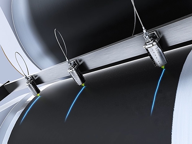 레이저 동축 변위 센서 CL 시리즈는 롤 상태의 전극 두께를 안정적으로 측정할 수 있으므로, 두께 관리를 상류 공정으로 앞당겨 이상을 조기에 검출하고 수율 향상에 기여할 수 있습니다.