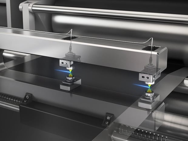 프레스 직후의 전극 두께를 고정도로 측정합니다. 프레스 롤을 두께에 맞춰 제어할 수 있으므로, 두께 편차를 억제해 수율 향상에 도움이 됩니다.
