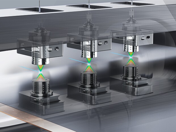 전극의 두께를 측정합니다. 레이저 동축 변위 센서 CL 시리즈는 도공량 조정을 위해 도공 후 전극의 총 두께와 박(알루미늄박/동박) 두께를 연산하여, 도공된 두께만을 산출할 수 있습니다.