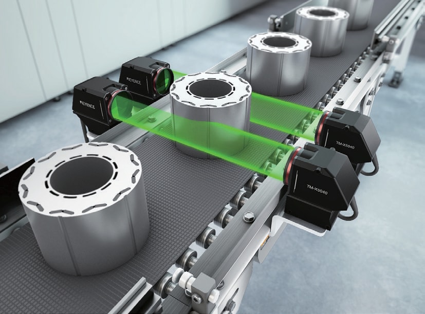 TM-X 시리즈의 센서 헤드를 2대 사용하면 외경 치수가 큰 대상 물체의 외경·원통도를 동시에 측정할 수 있습니다.