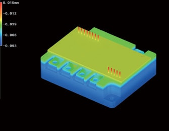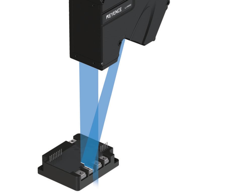 파워 모듈 단자의 평면도를 측정합니다. 대상 물체를 면으로 포착하여 최소 제곱법으로 산출한 기준 평면을 기준으로 평면도를 측정합니다. 대상 물체 설치 시의 기울기로 인한 오차를 무시하고 정확하게 측정할 수 있습니다.