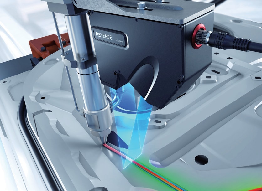 FIPG 등 액상 개스킷의 도포 높이 및 체적을 측정합니다. 3D 화상으로 검사하기 때문에 대상 물체의 색이나 배경색의 영향을 받지 않고 검사할 수 있습니다.