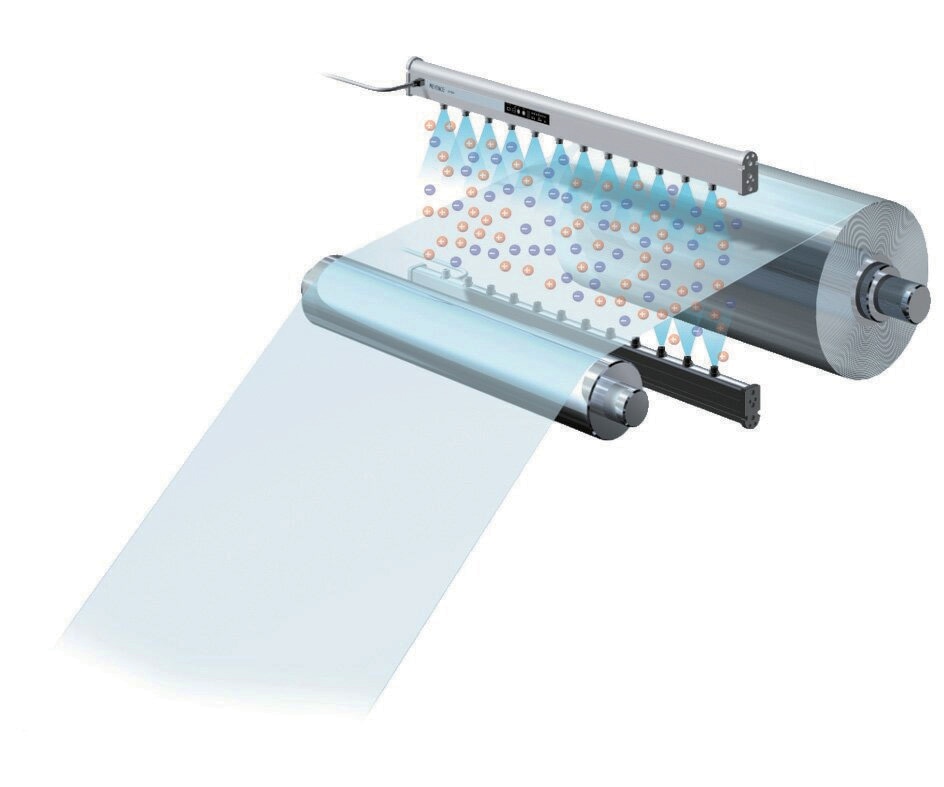롤투롤(Roll-to-roll) 공정에서는 필름을 풀고 감는 과정에서 강력한 박리·마찰 대전이 발생합니다. 이로 인해 필름을 풀 때는 방전 스파크가 발생하고, 감을 때는 이물질이 끼어들어 품질 불량을 유발했습니다. 또한, 대전된 상태로 납품하면 필름이 잘 벗겨지지 않거나 작업자가 감전되는 등 다양한 클레임의 원인이 되어 안정적인 품질 및 안전 관리가 어려웠습니다.