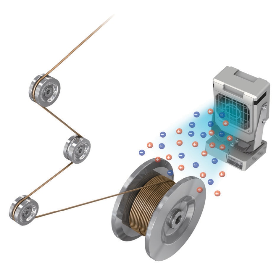 필름/시트 등 웹(Web) 이송 공정에서는 여러 롤러와의 접촉·마찰로 인해 강한 정전기가 발생했습니다. 이로 인해 권취 시 웹이 서로 달라붙거나 반발하여 정렬이 틀어지는 등 권취 불량이 발생했습니다. 나아가 고객사에서 제품을 사용할 때(권출 시) 엉킴 현상으로 이어져, 중대한 클레임의 원인이 되었습니다.