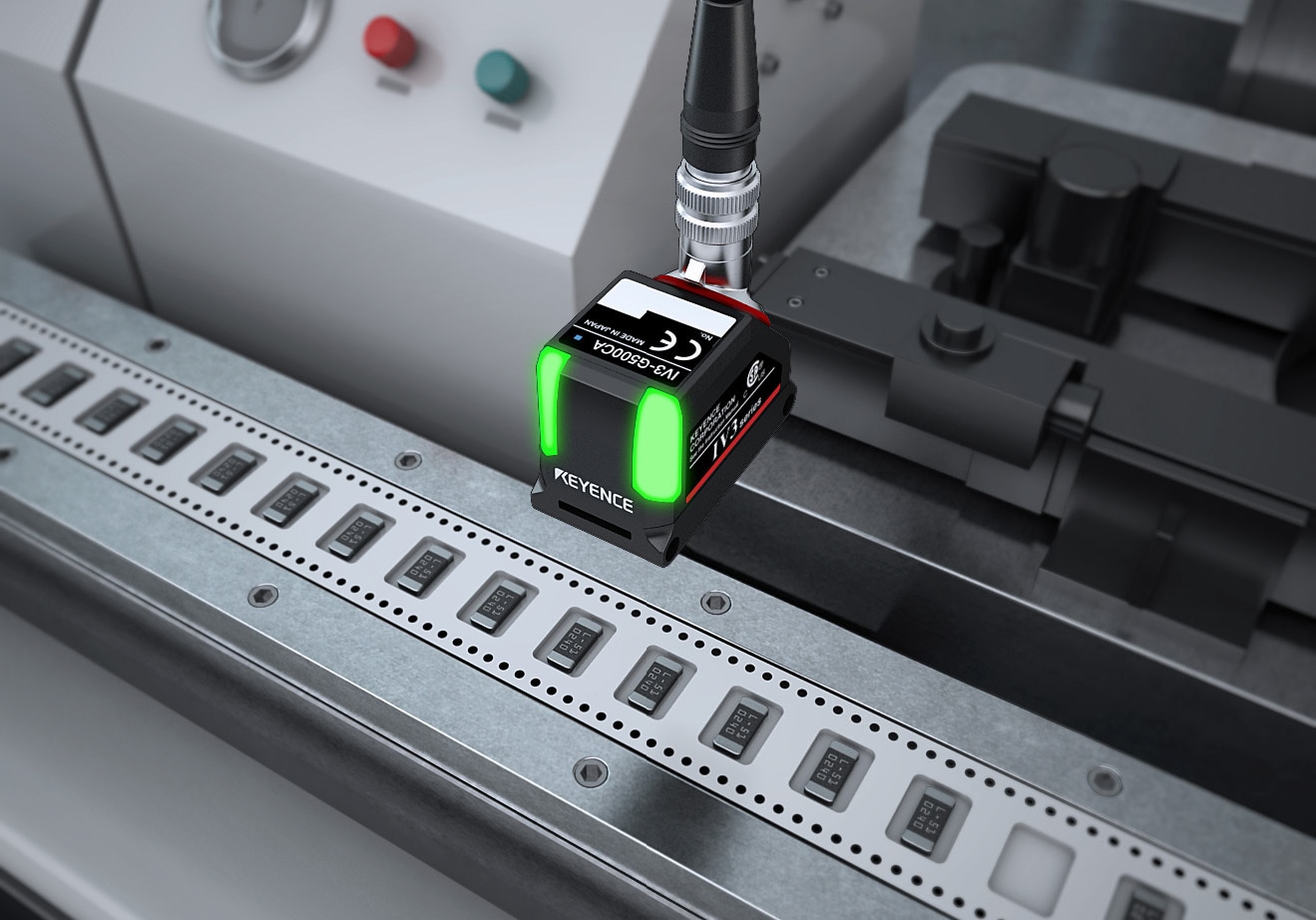 AI 탑재 스마트 비전 IV 시리즈는 고속 처리가 가능하여, 빠른 포장 라인에서도 칩 부품의 누락을 놓치지 않고 안정적으로 검출합니다. 또한 설정은 검출할 칩을 '면적' 툴로 터치하기만 하면 되므로, 누구나 간단한 조작으로 실수를 방지하고 품질을 확보할 수 있습니다.