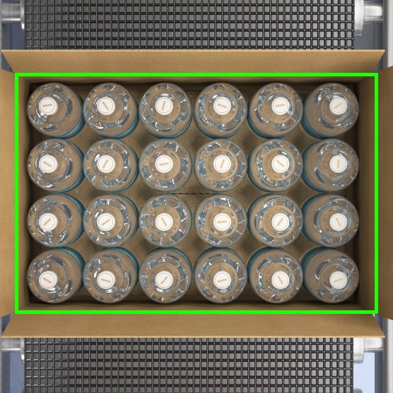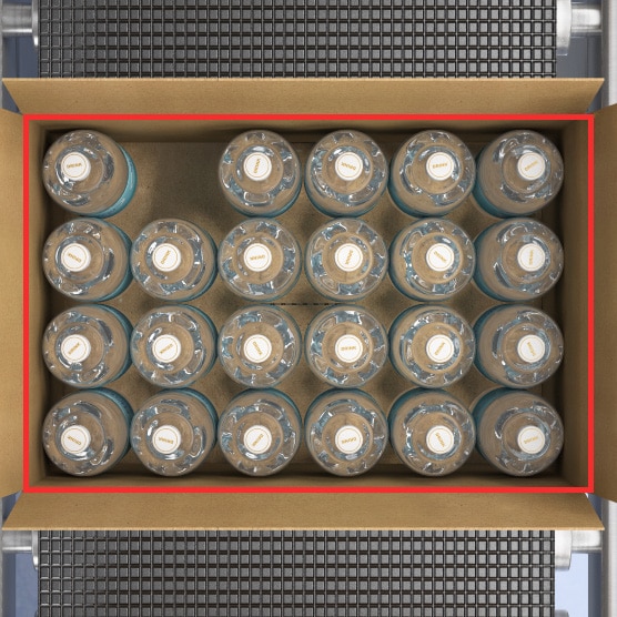 케이스 안에 페트병이 모두 채워졌는지 검사합니다. 병이 누락된 채로 출하되면 제품 신뢰도에 문제가 되지만, 케이스의 위치가 컨베이어 위에서 조금씩 틀어지면 여러 개의 병을 동시에 안정적으로 검사하기 어려웠고, 육안 검사에 의존해야 했습니다.