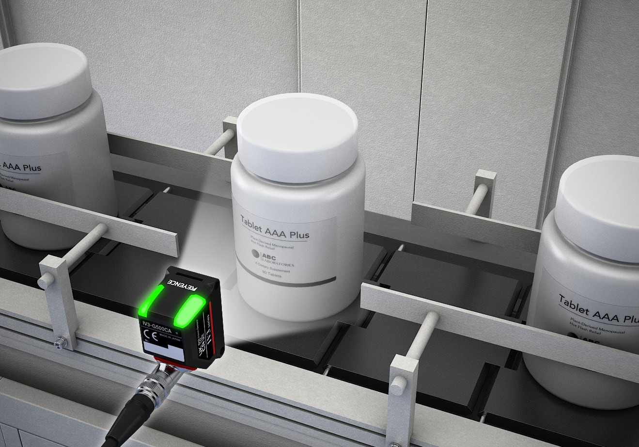 AI 탑재 스마트 비전 IV 시리즈는 검사 대상을 '면'으로 포착하므로, 대비가 낮은 투명 라벨도 안정적으로 검출하여 검사 자동화와 인력 절감에 기여합니다. 또한 검출 일시와 함께 OK/NG 화상 이력을 자동으로 저장하고, 모니터나 외부 신호로 간단하게 품종을 전환할 수 있어 다품종 라인에도 유연하게 대응할 수 있습니다.