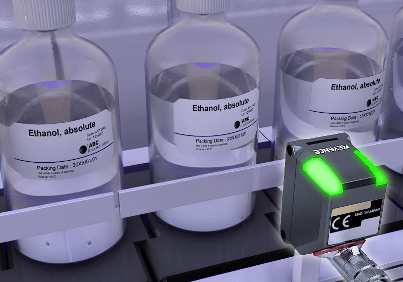 AI 탑재 스마트 비전 IV 시리즈는 밝기/초점 자동 조정은 물론, 문자 영역을 둘러싸기만 하면 되는 간단한 설정으로 누구나 쉽게 사용할 수 있습니다. 또한 위치 보정 기능으로 병의 크기나 위치가 바뀌어도 안정적으로 문자를 인식하며, 판독한 날짜는 외부로 출력하여 트레이서빌-리티 구축에 기여할 수 있습니다.