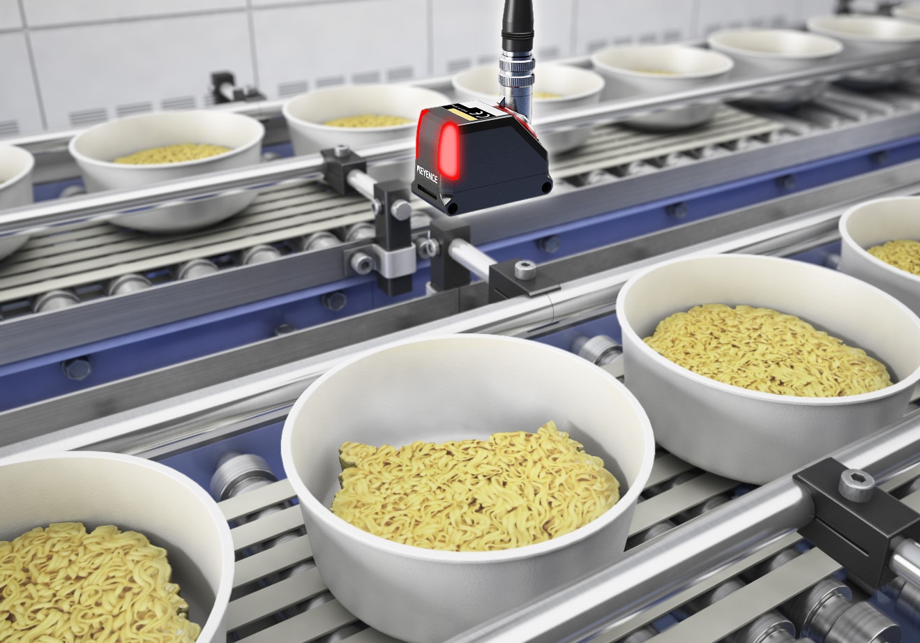 컵라면의 면이 부서지거나 한쪽으로 쏠리면 제품 품질이 저하됩니다. 하지만 컨베이어 위에서 컵의 위치가 조금씩 틀어지면, 기존 센서로는 면의 상태를 안정적으로 검사하기 어려웠습니다.