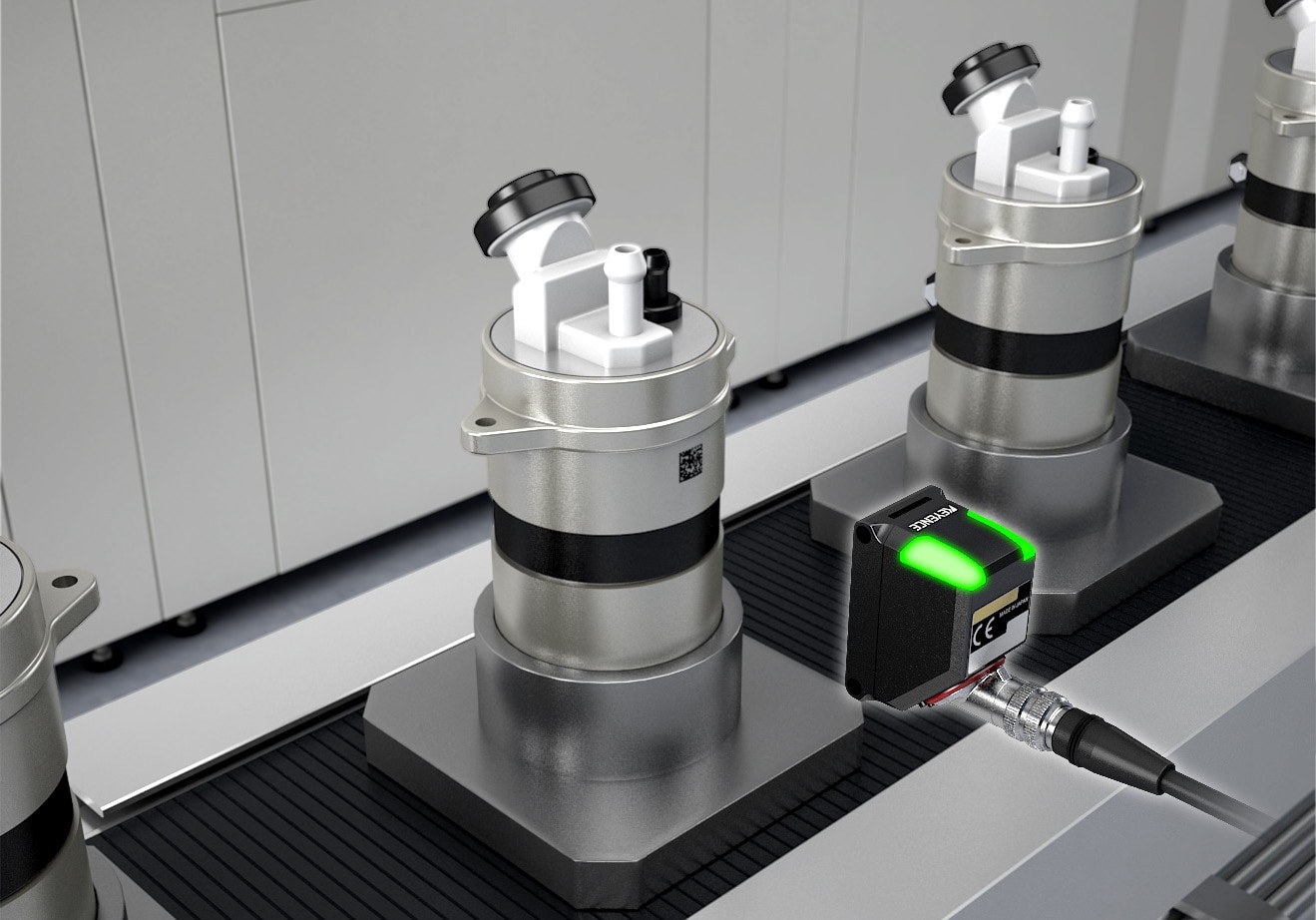 제품의 생산 이력을 추적하는 트레이서빌리티(Traceability)를 확보하기 위해, 부품에 각인된 QR 코드의 유무를 정확히 확인해야 합니다. 하지만 대상물이 금속 원통형일 경우, 표면의 곡률이나 헐레이션 때문에 기존 센서로는 각인된 QR 코드를 안정적으로 인식하기 어려웠습니다.