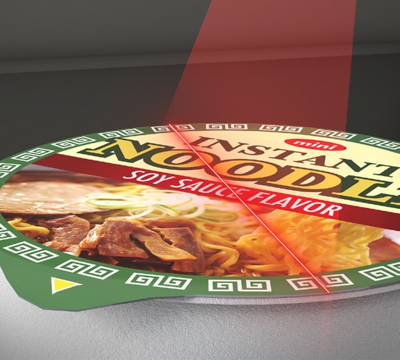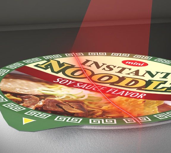 컵라면 뚜껑의 실링(밀봉) 불량이나 미세한 구멍은 제품의 위생과 품질을 저하시키는 직접적인 원인이 됩니다. 하지만 고속으로 생산되는 라인에서 뚜껑 전체의 미세한 들뜸이나 눌림, 구멍 등을 안정적으로 검출하기는 어려웠습니다. 특히 점(Point) 타입 센서로는 검사 영역이 한정되어 불량을 놓칠 가능성이 있었습니다.