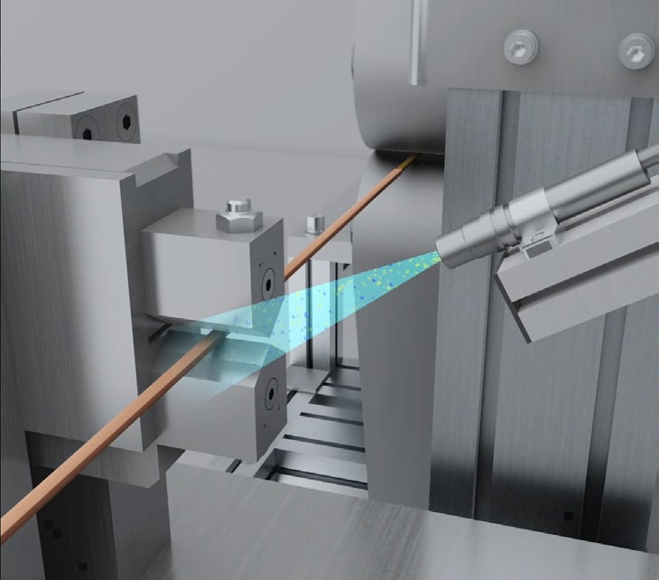 평각선 박리 공정에서는 발생하는 이물질이 정전기로 인해 제품에 부착됩니다. 기존에는 에어 퍼지(Air Purge)로 대응했지만, 정전기의 영향으로 부착물이 완전히 제거되지 않아 후공정 불량 및 품질 저하의 원인이 되었습니다.