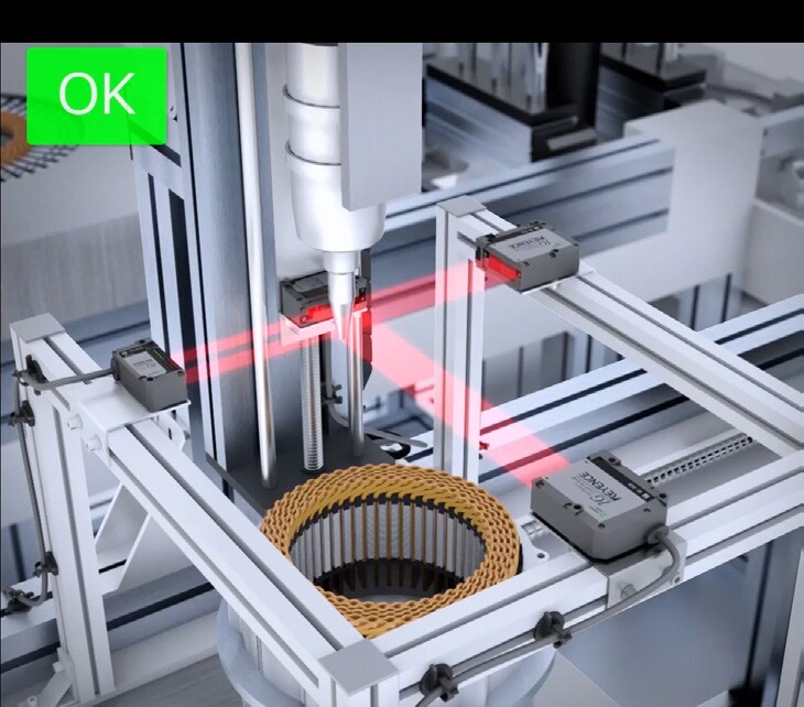 CCD 투과형 레이저식 판별 센서 IG 시리즈는 토출 노즐의 위치를 X-Y 좌표로 정밀하게 검출할 수 있습니다. 광축 조정이 간편하여 설치가 용이하며, 2치화 레벨(감도)을 설정하여 주변의 먼지 등 노이즈의 영향을 받지 않고 노즐의 엣지만을 안정적으로 검출할 수 있습니다. 이를 통해 노즐의 위치 틀어짐이나 휨을 사전에 감지하여 도포 불량을 예방하고 공정 안정성을 높일 수 있습니다.
