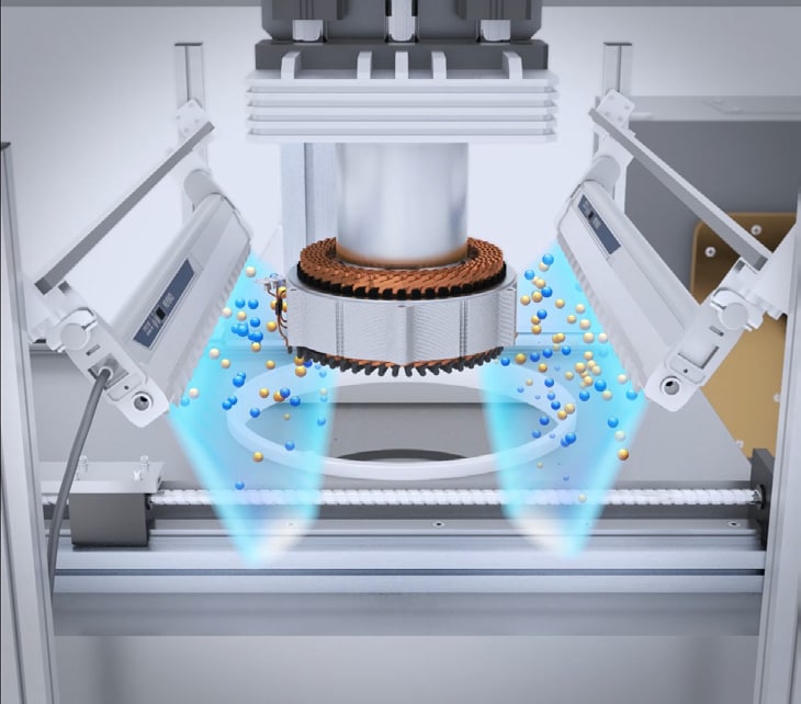 이오나이저 SJ 시리즈는 독자적인 I.C.C. 방식을 통해 전극침 청소와 같은 번거로운 유지 보수 없이도 장기간 안정적인 제전 성능을 유지합니다. 이를 통해 설비 내부 공간 전체를 제전하여 분말의 부착을 원천적으로 방지하고, 이물질로 인한 불량을 예방하여 제품 품질 향상에 기여할 수 있습니다.