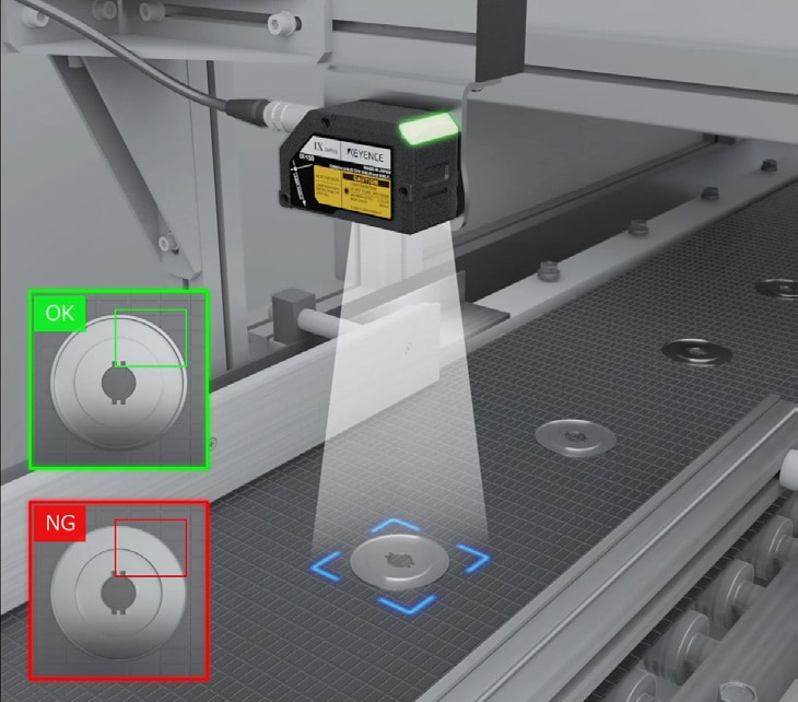 화상 탑재 레이저 변위 센서 IX 시리즈는 외관(색상/형상)이 아닌 높이 차이로 대상을 판별합니다. 따라서 부품 상부에 간단히 설치하는 것만으로, 미세한 형상이나 높이 차이를 감지하여 품종 판별과 앞뒷면 판별을 동시에 안정적으로 수행할 수 있습니다.